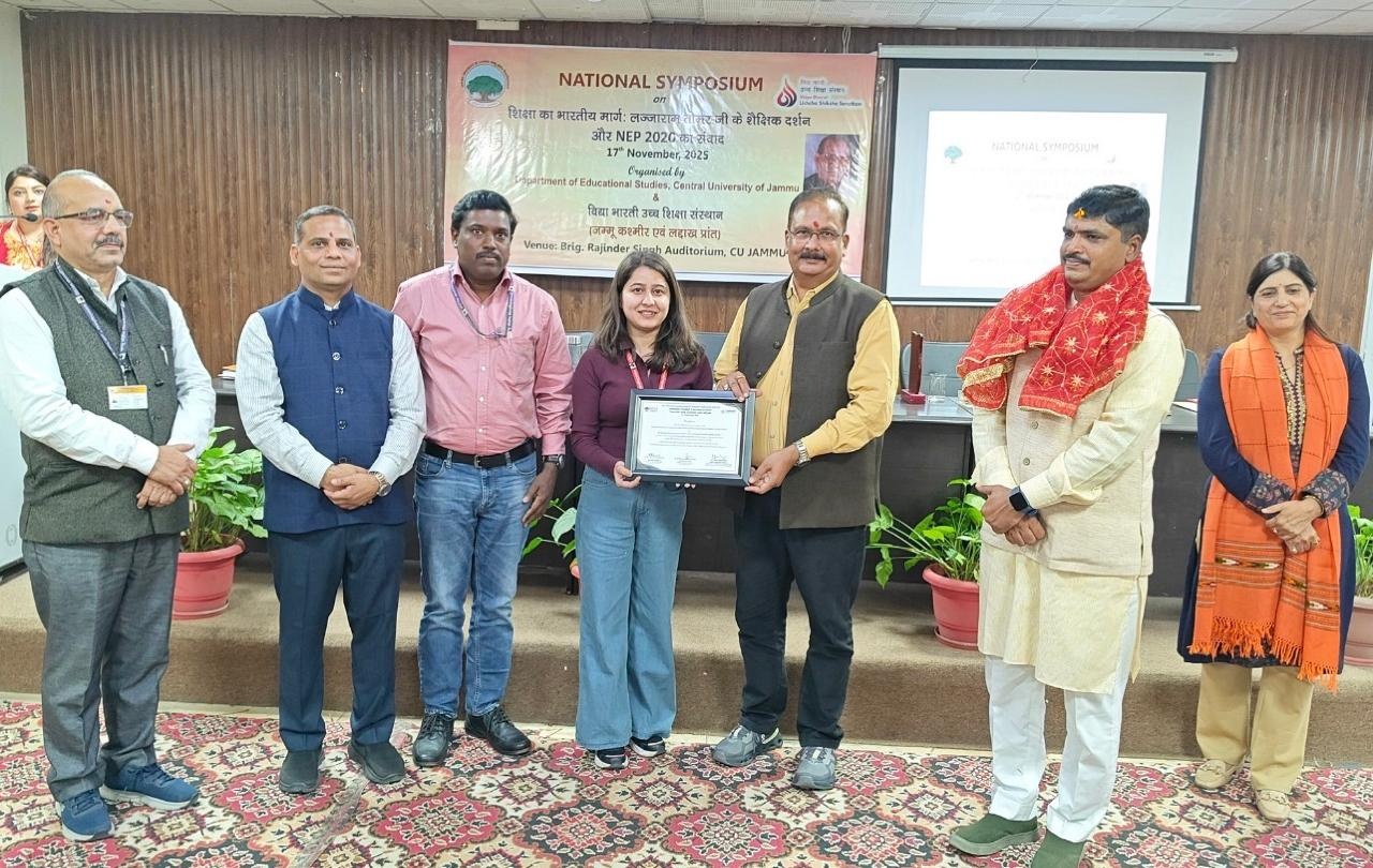 Prof. Sanjeev Jain, Hon’ble Vice-Chancellor, Central University of Jammu, appreciated the research scholar and supervisor for her achievement and also appraised it as a milestone in her research journey. Prof. Asit Mantry, Head, Department of Educational Studies congratulated both the scholar and supervisor for this achievement, which recognizes not only them but also for the Department as well as the University.
