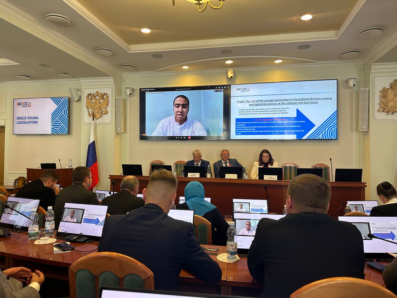 EGYPT: International activist and anthropologist Hassan Ghazaly, founder of the Global Solidarity Network, participated as a keynote speaker representing the Arab Republic of Egypt with a presentation titled "The Egyptian Experience in Preparing and Qualifying Parliamentary Representatives and Involving Youth in Legislative Processes" at the "BRICS Young Legislators Forum," organized by the Legislative Assembly of the Novgorod Region as part of the BRICS Cities and Municipalities Twin Forum.
