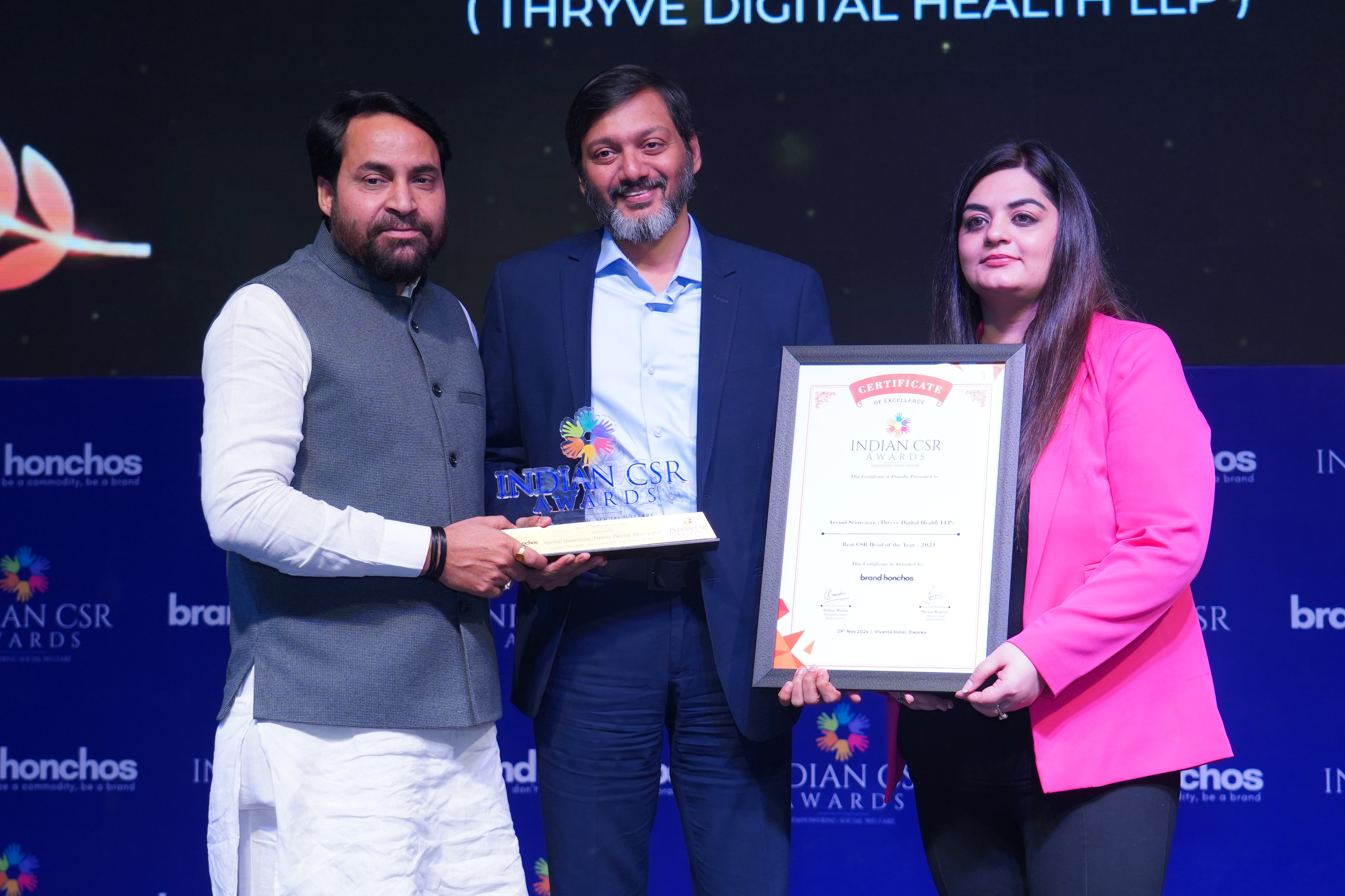 NEW DELHI: Thryve Digital Health, a leading provider of healthcare technology and operations services to some of the United States' foremost payors and providers, has received two prestigious honors at the Indian CSR Awards 2024, for the exceptional work in the field of Corporate Social Responsibility. Thryve was awarded Best CSR Head of the Year, recognizing the leadership of Arvind Srinivasan, CSR Head and CFO, and the Best CSR Brand Activation Award, which highlighted the impact of the companyâs innovative initiatives under its flagship CSR program, Thryve for Good.
