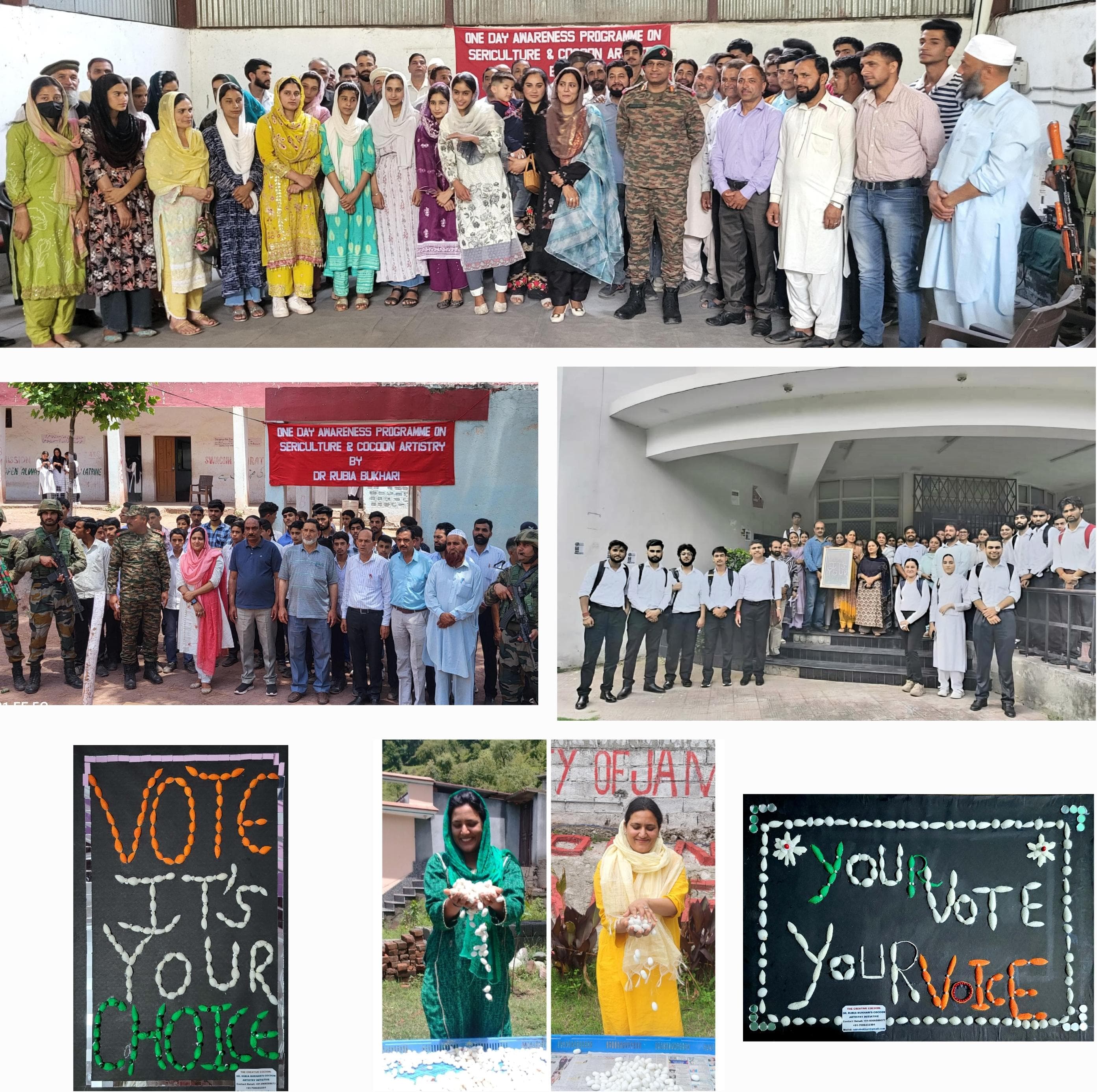 Under the SVEEP initiative aimed at promoting civic responsibility, Dr. Rubia Bukhari adopted a unique approach by integrating Cocoon Artistry with voter awareness campaigns. Through intricate designs and creative messages made from cocoon particles, Dr. Bukhari's work inspired citizens to exercise their right to vote. Her Cocoon Artistry, reflecting the importance of voting, became a symbol of civic responsibility during the election season.